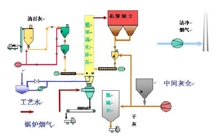 Sodium bicarbonate dry desulfurization technology is to spray the high-efficiency desulfurizer—sodium bicarbonate into the flue, which is fully mixed with the flue gas through the specially designed gas mixer of our company to enhance the chance of contact between flue gas and sodium bicarbonate. Improve desulfurization efficiency. Sodium bicarbonate undergoes heat transfer and physical and chemical reactions with flue gas in the flue. At the same time, it is activated by heating, the specific surface area increases rapidly, and it fully contacts with the flue gas to absorb and purify the SO2, HCl, HF and other acidic substances in the flue gas. The flue gas passes through the bag filter for gas-solid separation to achieve the purification effect, and the dust content is easy Achieve less than 10mg/Nm3.